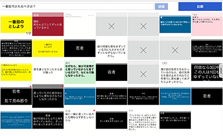 將卡片提交給老師,經由廣播來共享大家的回答並進行討論。