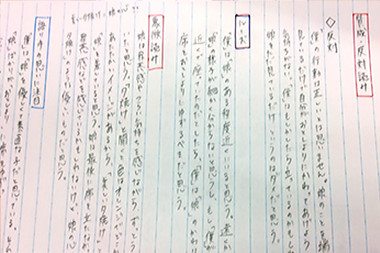 此時請注意,禁止孩子們使用諸如「很快樂」這類的感嘆詞。這裡不是要發表感想,而是要具體地將自己在課堂上得到甚麼以文字描述,並將之文章化。