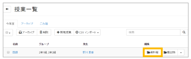 找到想要新增檔案的課程後,點選位在該課程的橫列右側的[資料盒]。