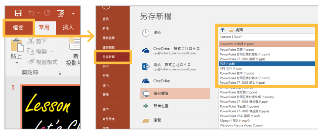 2.在存檔類型處選擇「PDF(*.pdf)」後將其存檔。