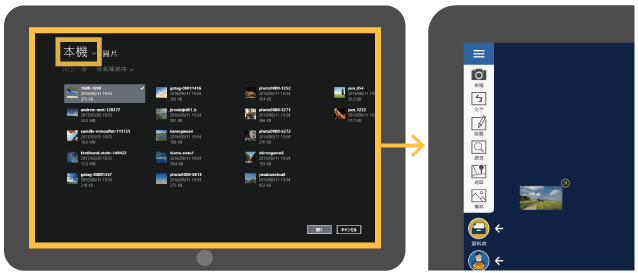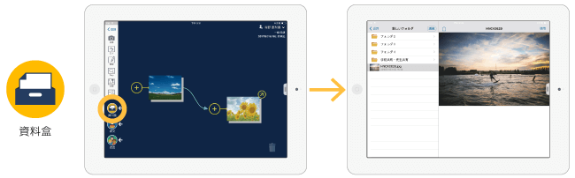 點選平板電腦上的[資料盒],就可以在檔案列表中選取要作為來卡片使用的文件。