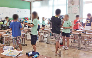 ロイロノートで児童に提出してもらったが、教師のタブレットに提出順ではなく、出席番号順に表示させ、未提出の児童を確認しやすくした。