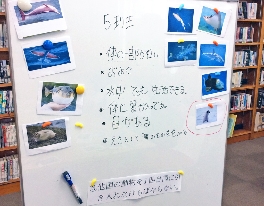 途中で、新たな基準をクラス全体で適応させたり、他のグループとの交流を交えたりしながら、最終的に、自分たちがどのような基準で動物を分類したのかを発表させます。